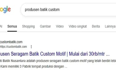 Berhasil menduduki posisi top ranking 1 untuk kata kunci terbidik "Produsen Batik Custom"