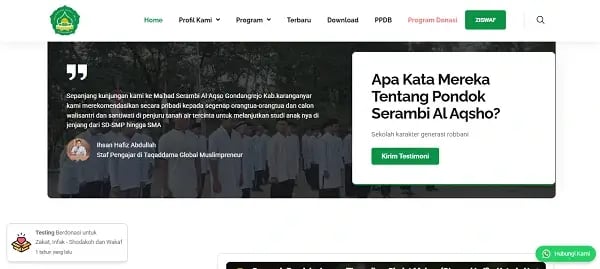 Website lembaga pendidikan dengan fitur lengkap seperti PPDB, program sekolah dan donasi